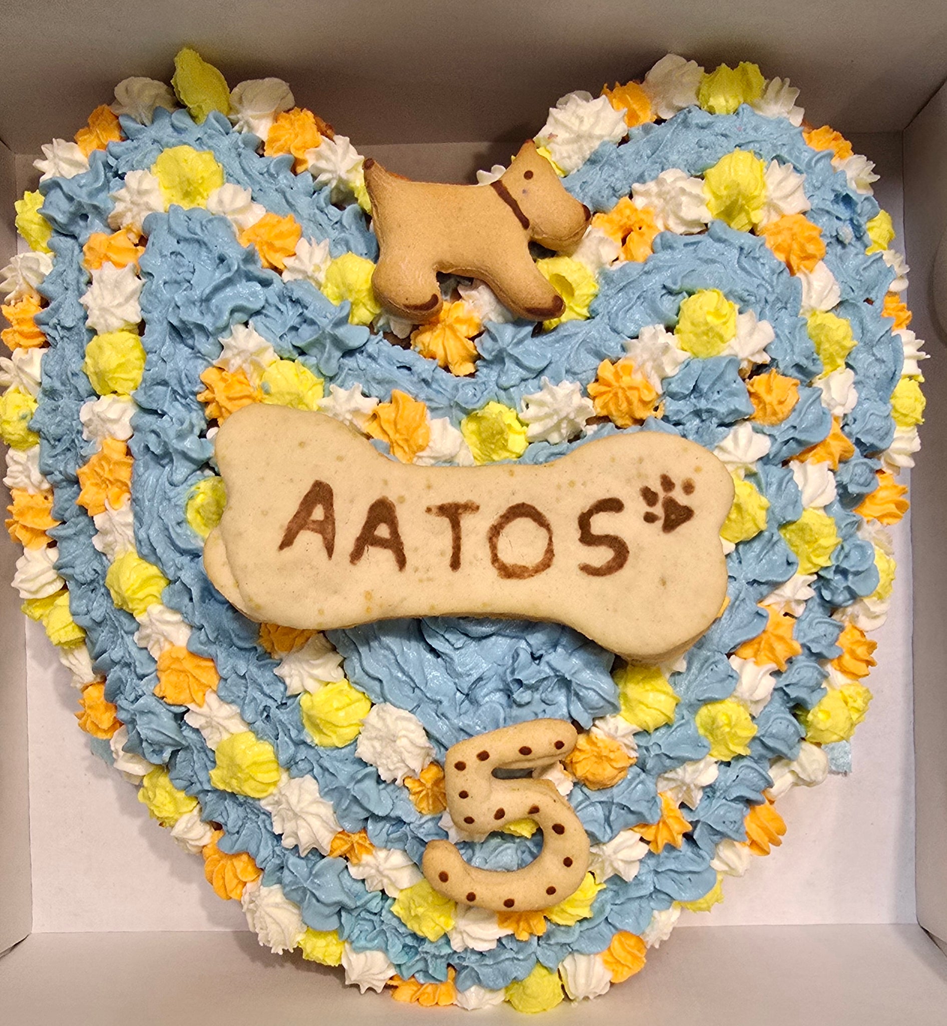 Pet's name can be written on a biscuit or cut out in fondant lettering. For Fondant lettering, we will need a week's notice.